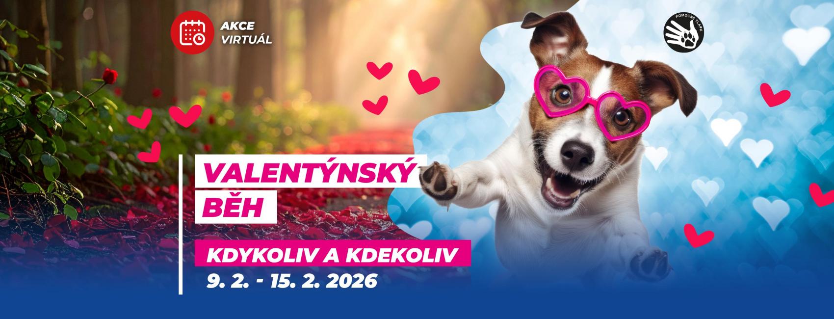 Ať jsi milovník romantiky nebo patříš mezi ty, kteří si na Valentýna raději otevřou sklenku vína. Tak i ty letos pomáhej pohybem kdykoliv a kdekoliv od 9. 2. do 15. 2. 2026. Stačí si zapnout hodinky nebo mobilní aplikaci, zdolat libovolným pohybem 5 km a nahrát důkaz o aktivitě do svého profilu. Výtěžek ze startovného putuje na podporu organizace Pomocné tlapky, na výcvik asistenční psí slečny Loly.
